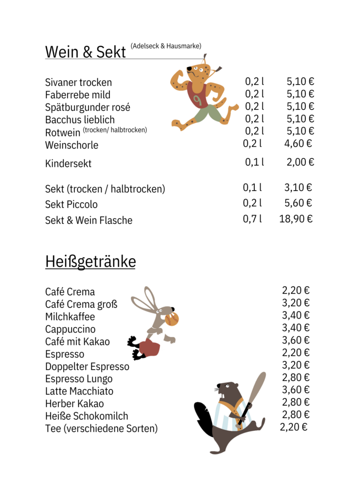 1. Getränke- & Speisekarte Malstudio / Kinderland