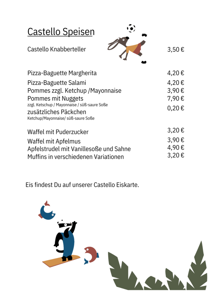Getränke- & Speisekarte Malstudio / Kinderland